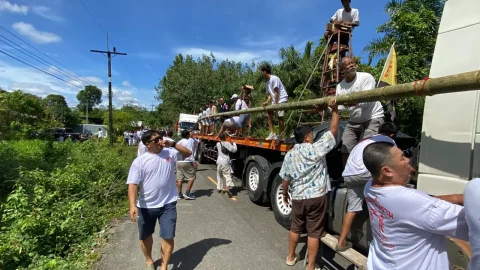ตรัง ศาลเจ้าตรังตัดต้นไผ่เตรียมยกเสาเต็งโก